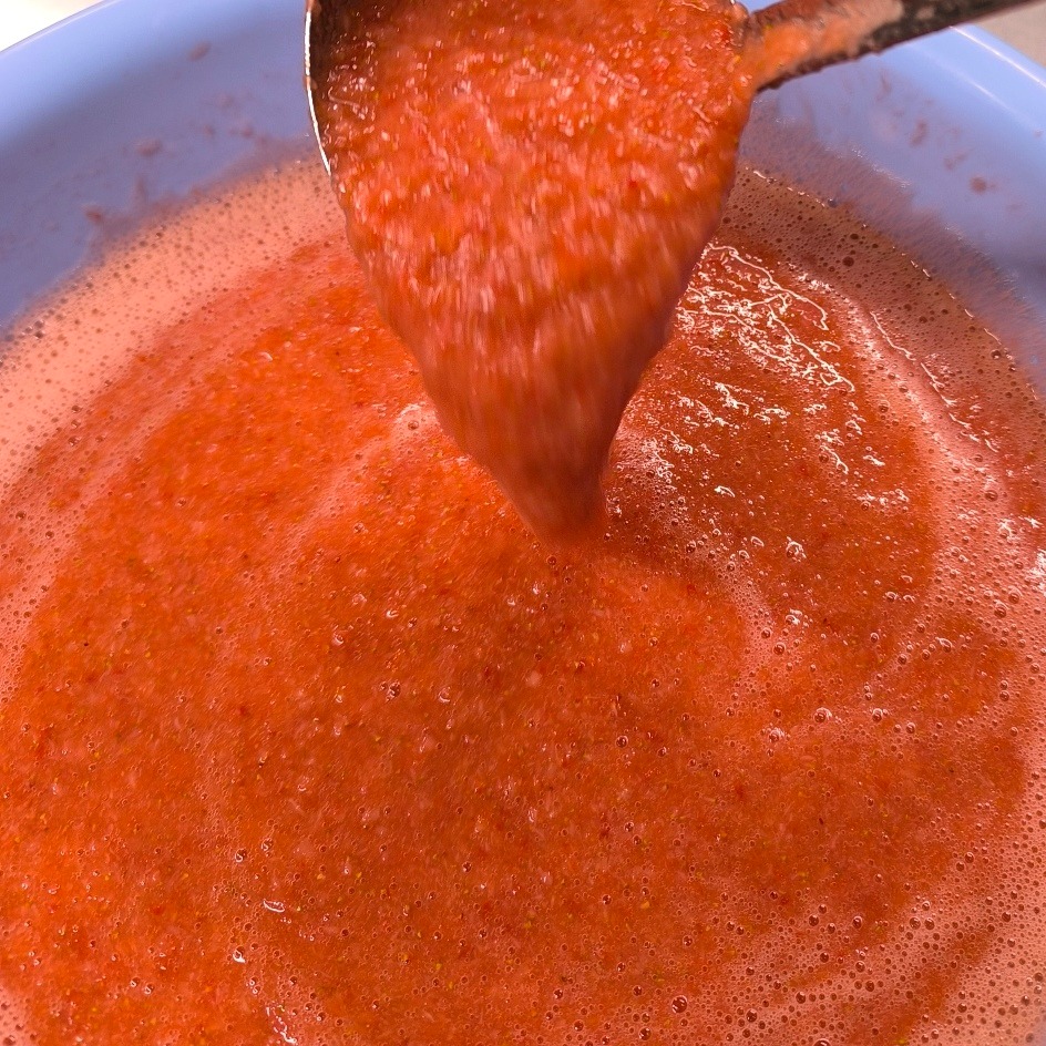 いちごに限らずですが、生産ピーク期の素材は廃棄されてしまうこともあります。流通事情でやむを得ないこともあるのですが、精魂こめて育てた素材が捨てられない手段のひとつとして完全果実が役に立てたらと思っています。