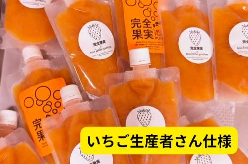 お送りいただいたフルーツを完全果実に加工し、産地に里帰りさせています。畑仕事の休憩時間のリフレッシュやスタッフさんの福利厚生に活用ください。生産者さん仕様の「オリジナル完全果実」を製造することも可能です。今までにいちご、メロン、桃、ブルーベリー、梨、ブラッドオレンジ、柿、柚子などを製品化しています。